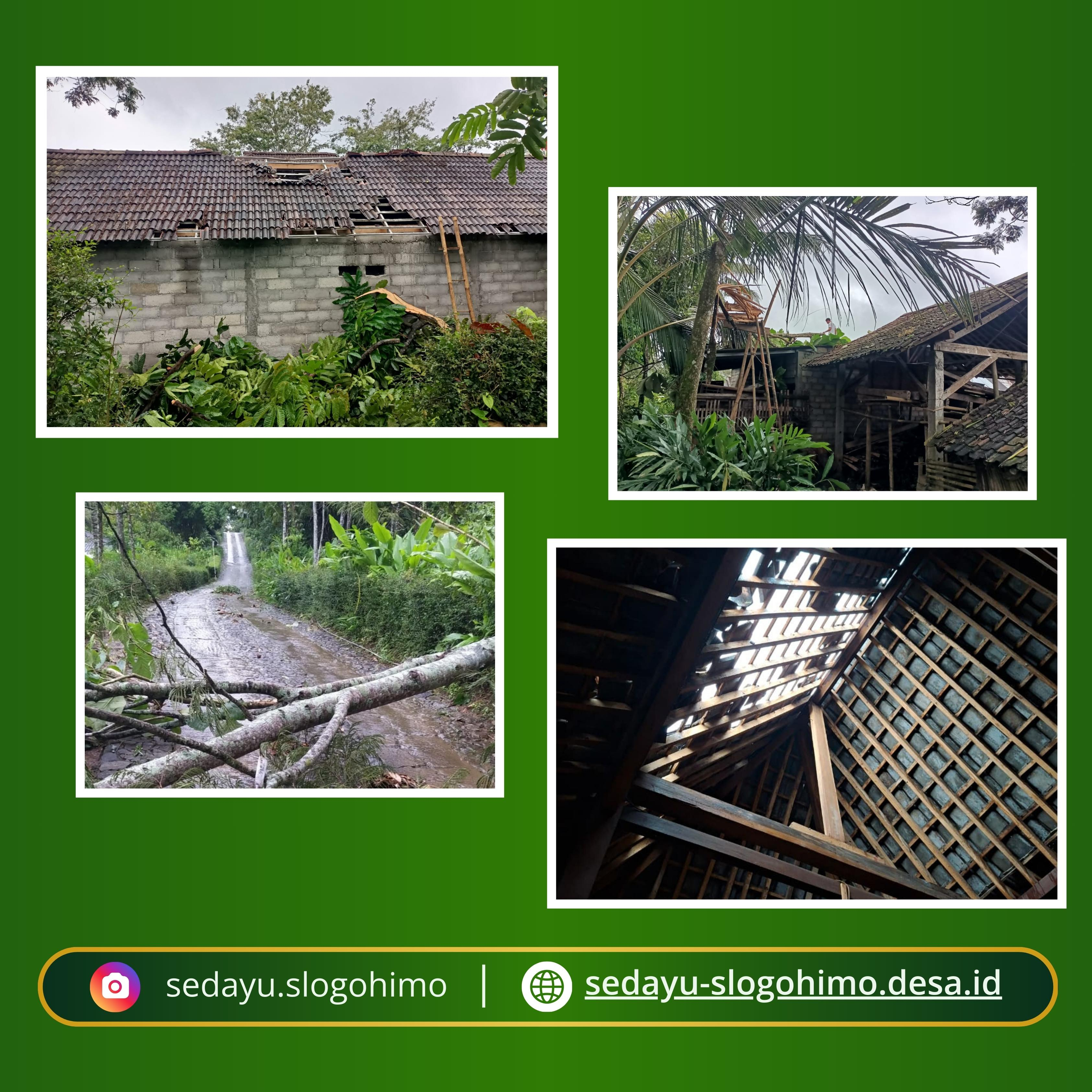 Beberapa pohon yang tumbang dilaporkan menimpa rumah warga sehingga mengakibatkan kerusakan pada bagian atap. Selain itu, genteng rumah warga juga berhamburan akibat kuatnya terpaan angin. Dampak bencana tersebut terjadi hampir di seluruh wilayah dusun yang ada di Desa Sedayu.