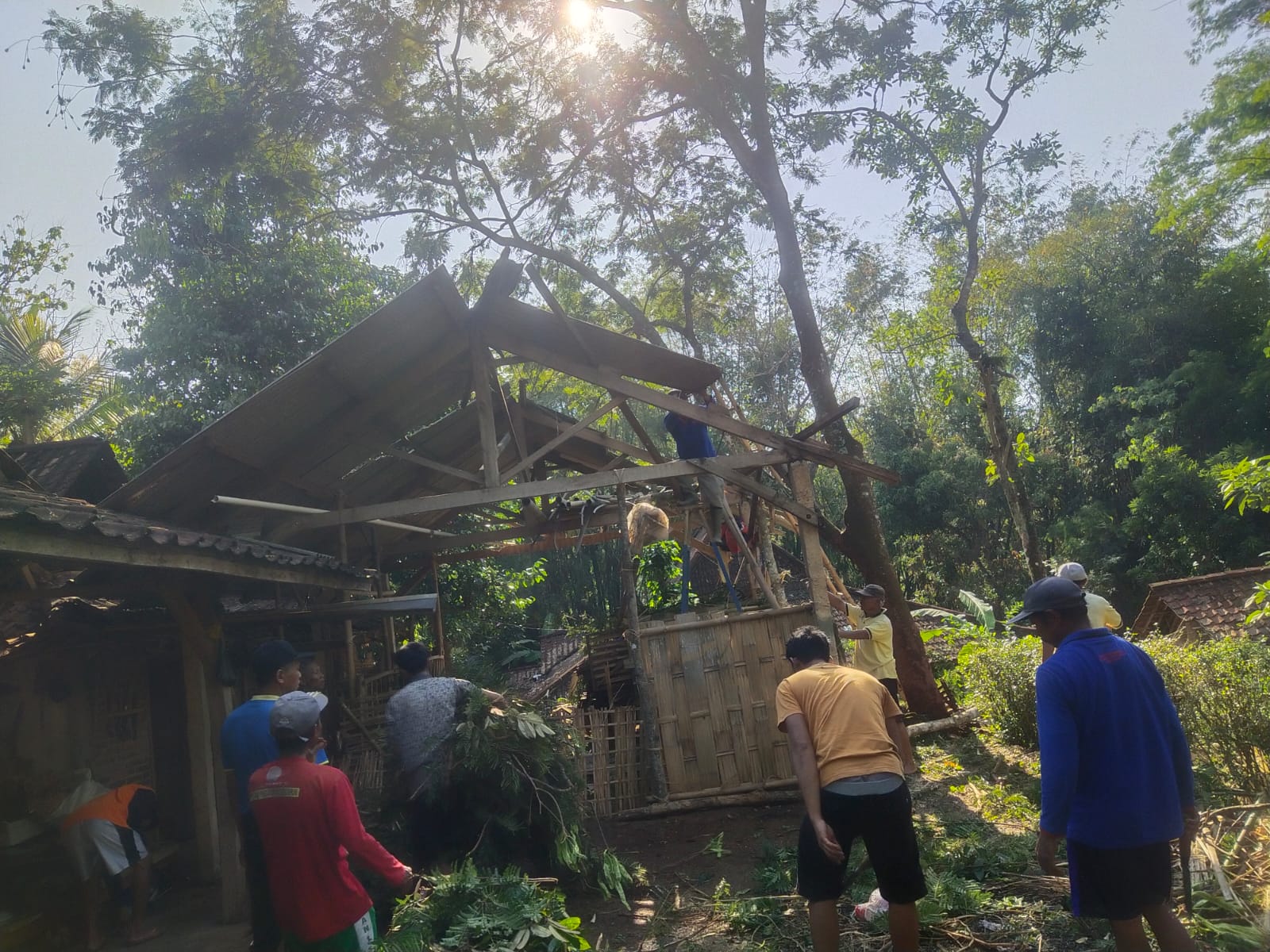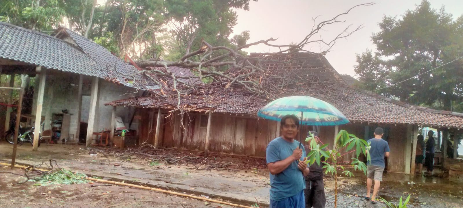 Pasca kejadian, warga yang tidak terdampak bersama perangkat desa langsung melakukan aksi gotong royong untuk membantu keluarga terdampak. Mereka membersihkan puing-puing bangunan, menyingkirkan pohon tumbang, serta membantu memperbaiki bagian rumah yang rusak agar dapat segera ditempati kembali.